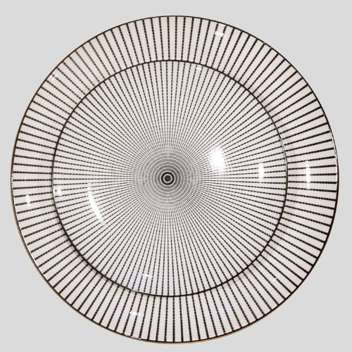 These 7.5-inch side plates feature a modern black-and-white dashed circular design and bring stylish accent pieces to your table while retaining the durability of stoneware.